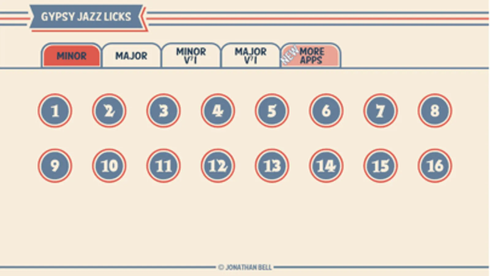 65 classic licks, perfect for guitar solos in the gypsy swing style.