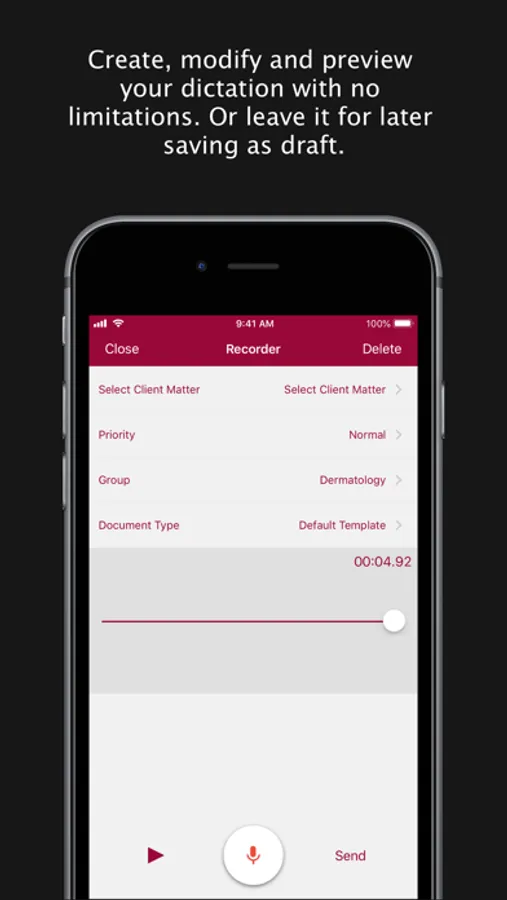 • Create dictation on the go.