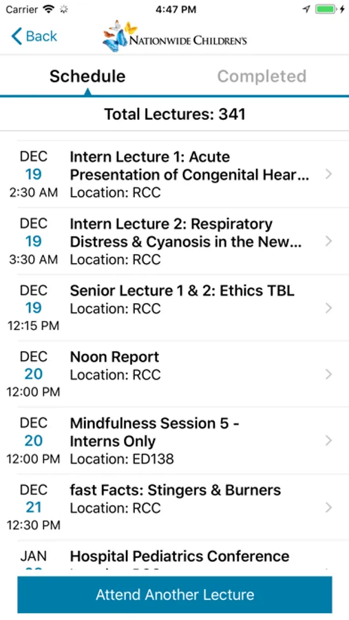 "My Residency" – A mobile tool and guide for Resident’s at Nationwide Children's Hospital. My Residency is available by invitation only to those Pediatric Resident’s at Nationwide Children’s Hospital. This helping tool is designed to provide quick access to information vital to the program. Review scheduled lecture times and log your attendance. Review clinical guidelines and reference books. Access your online schedule and online calculators. The App provides access to our phone numbers and connectivity to departments across the system, information on the various rotations, and a directory of other residents.