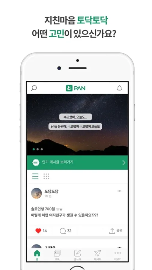 - 매일매일 새로운 고민으로 가득한 게시글들을 토닥여 보세요.