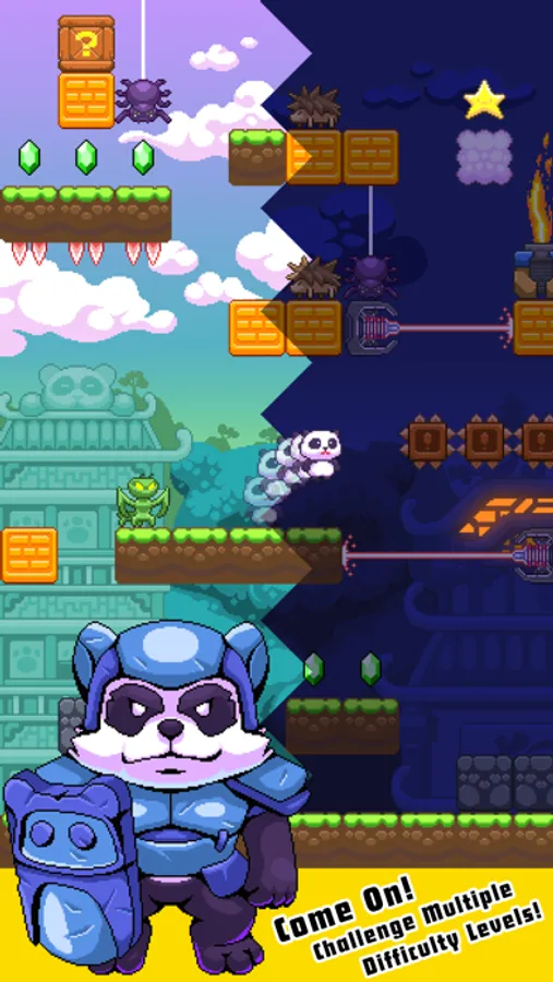 Discover all the different levels in Panda Power! Enjoy yourself on different terrific, wonderfully designed worlds with multiple levels.