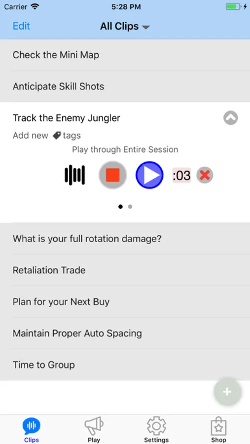 Level up your game! Reiterate is a personal coaching app for players of online esports games. Reiterate lets you can design custom training sessions to help you focus on the skills you need to improve. Completely open-ended and customizable, it will work with any game. Simply record audio prompts to help you focus, adjust your playback timings, and every game becomes a training session. You know what you need to work on — let Reiterate keep you on track. It's like having your own personal coach who's watching you every time you play.