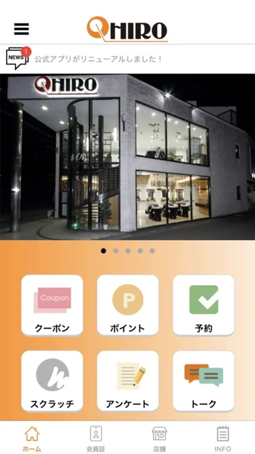 お店の最新情報をお届け/お店でもらえる利用ポイント/アプリ会員証やクーポンでアプリ会員限定の特典をゲット/現在地から近くのお店をナビでご案内/アプリからweb予約