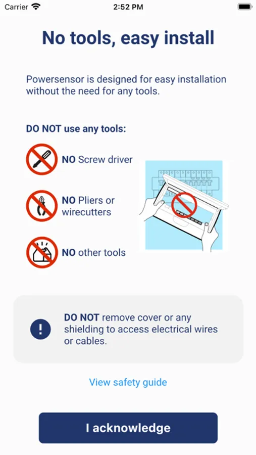 No electricians and site inspections required. No need to disrupt your energy supply or go near any dangerous, live wires. Install Powersensor by yourself within 15 minutes - no tools required!
