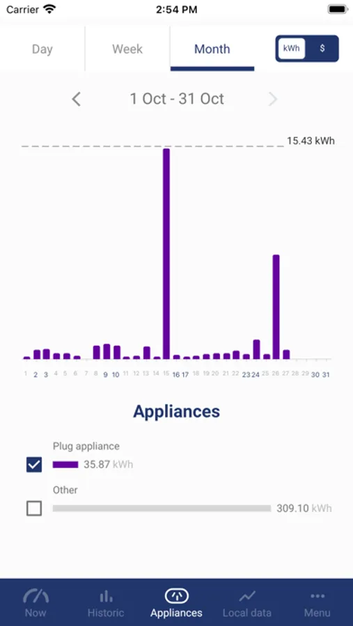 See which appliances consume the most energy. Use data to determine if an old, inefficient appliance should be replaced.