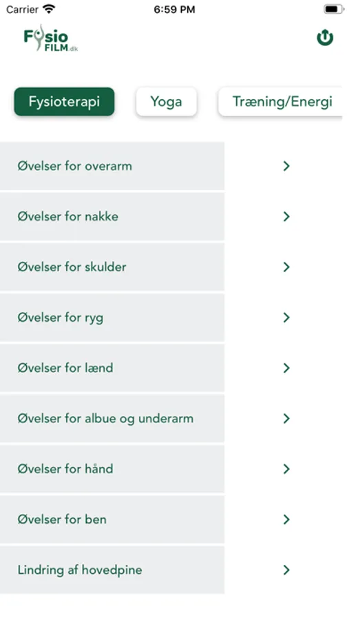 Medarbejdernes smerter i ryg og nakke koster virksomheder milliarder hvert år. Vi har skabt en række korte øvelser på film, som kan lindre smerter og give mere energi. Alle øvelser tager udgangspunkt i konkrete udfordringer. Eksempelvis ondt i nakke, håndled eller ryg. Med FysioFilm kan hver medarbejder på en enkel og effektiv måde hjælpe sig selv til at få det bedre.