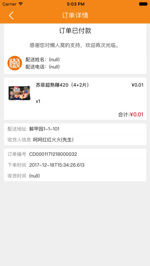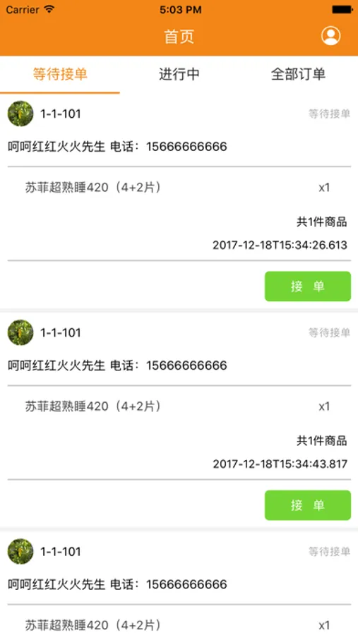 懒人窝配送端APP,用于对懒人窝客户端的订单进行接单,出库,收货等相关操作。