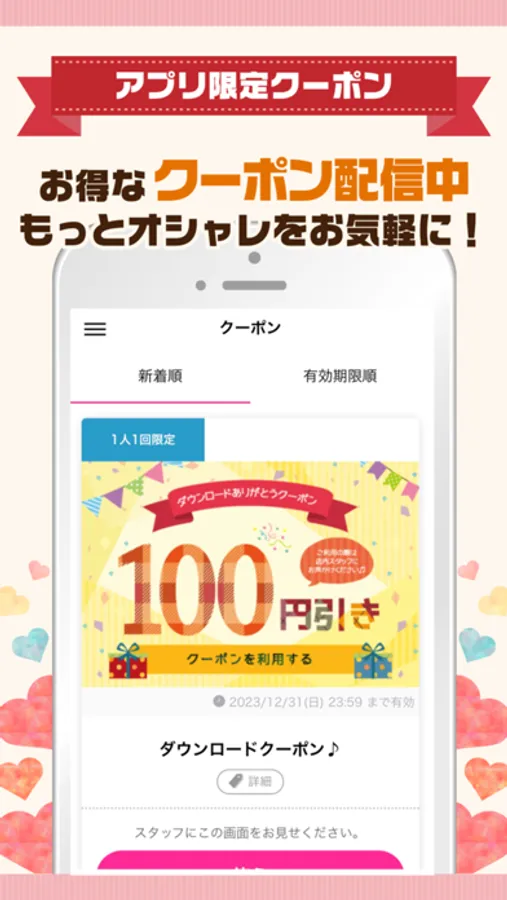 お得なクーポンを活用し、もっとお得にお手軽におしゃれをお楽しみください!