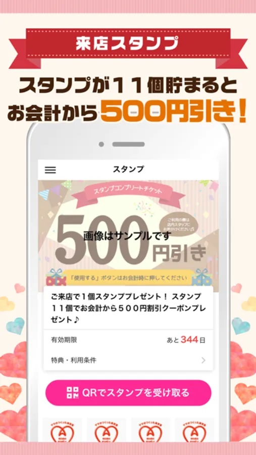 スタンプが11個貯まると「500円引き」クーポンが発行されます!!
