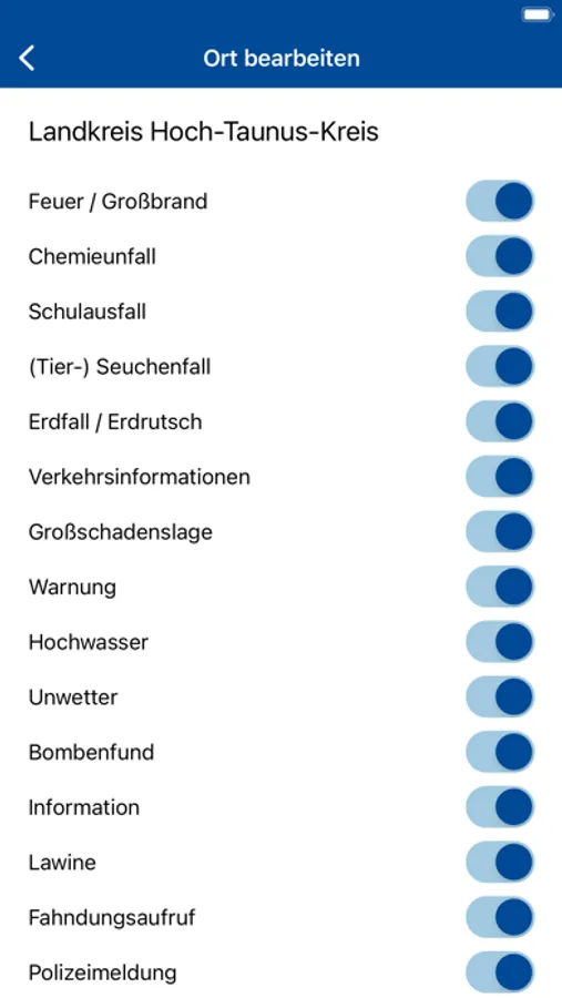 Die Meldungen werden von den zuständigen Sachgebieten des Landratsamtes versendet. Die App „Hochtaunuskreis-App“ ersetzt nicht die Anweisungen von Behörden, Polizei oder anderen Einsatzkräften vor Ort.