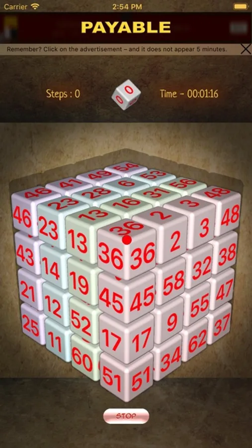 The game is based on the principle of the puzzle "15". Moving the chips you need to collect them in order. The game ends when all the chips in all layers will be in ascending order, starting with the upper left corner of each layer.