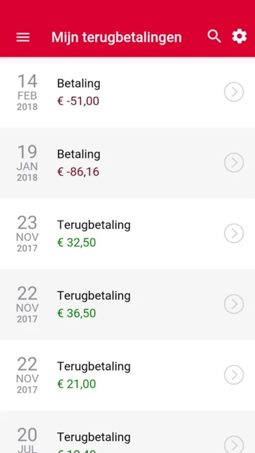 • Zoek terugbetalingen dankzij een handige zoekfunctie.