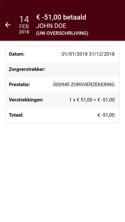 • Raadpleeg alle details van je terugbetalingen, zoals datum, zorgverlener, verstrekking en bedrag.