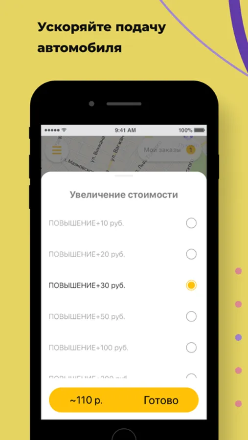 Спешите по делам? Увеличьте стоимость заказа, и водитель приедет на заказ быстрее.