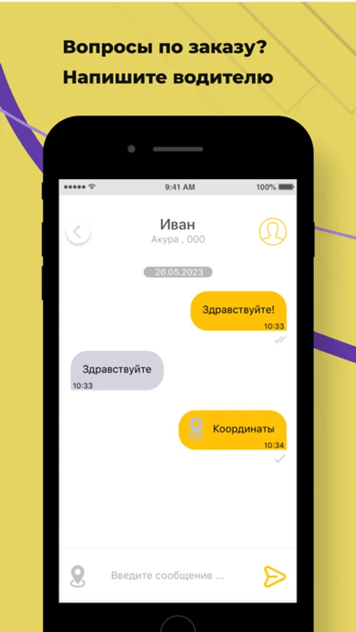 Спросите в чате приложения, где он находится, или отправьте ваши координаты с помощью одной кнопки.
