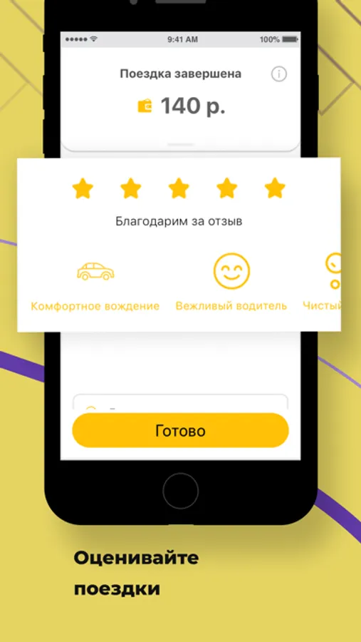 Поставьте оценку водителю, напишите отзыв или выберите реакцию из готовых шаблонов.