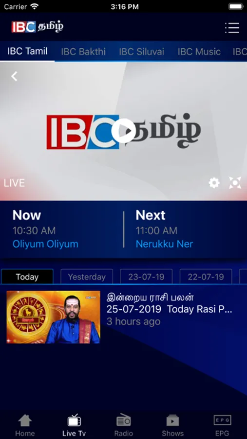 My IBC Tamil - Live TV & Radio is one of the best Live media apps available to watch over 7 Live TV Channels and Radio through live streaming and video-on-demand. My IBC Tamil app has different features - Live TV, Catch-up TV, Movies, TV Shows, News, Short films, Web series, Music Videos Kids series and relegious shows.