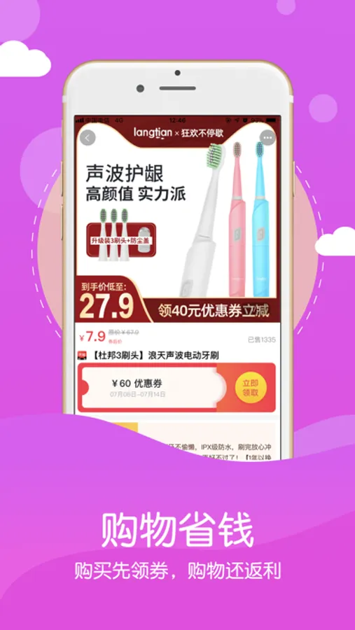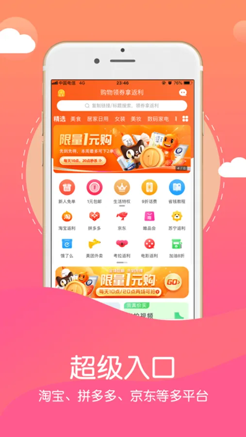 1、购物省钱有妙招:限时抢全网尖货,低价秒杀,超级给力优惠券下单立减,外加高额返利,真正省上加省!
