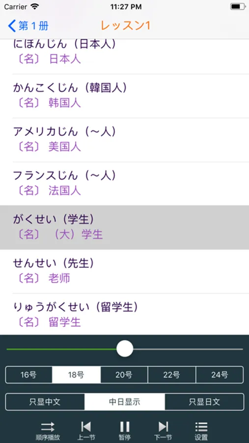 学日语是一款针对于日语初学者的一款基于音频单词的教程软件。