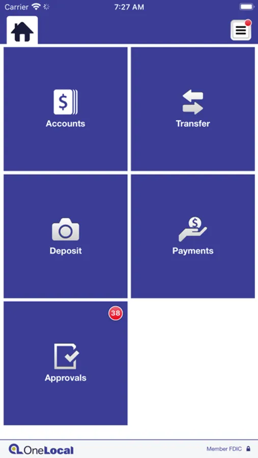 • Approve transactions scheduled through OneLocal Business Online, including fund transfers, ACH transfers and wire transfers