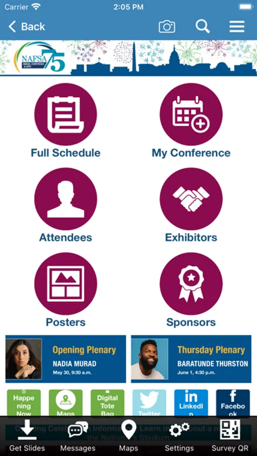 The NAFSA Conferences mobile application allows you to access annual or regional NAFSA conference data. Within the underlying event apps, users can access presentations, exhibitors, and connect with other attendees. Users can also take notes adjacent available presentation slides and draw directly on slides inside the event apps.