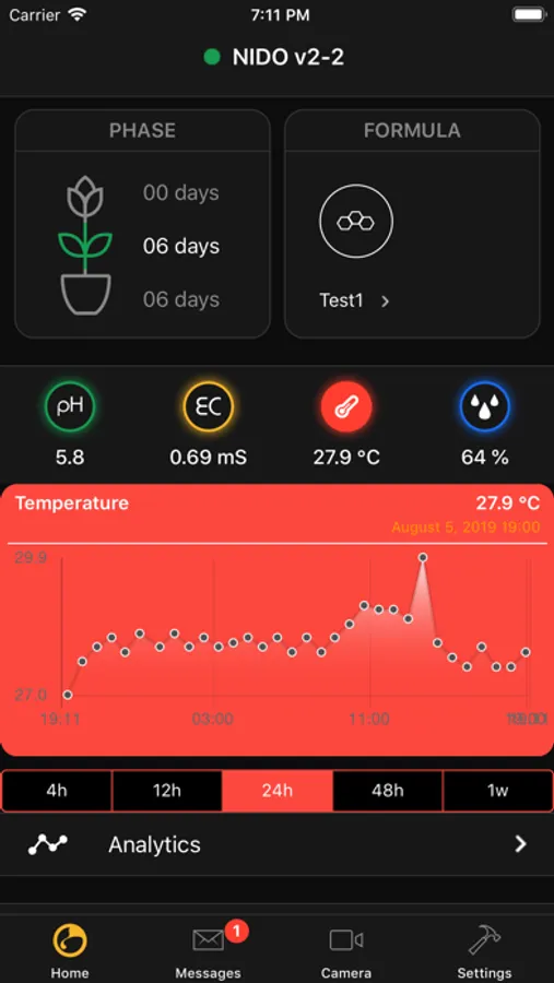 The NIDO™ system is versatile and fits all your needs, so you can manually control every single device. You can also analyze and export the detailed parameters of your cultivation, share them with others, or study them.