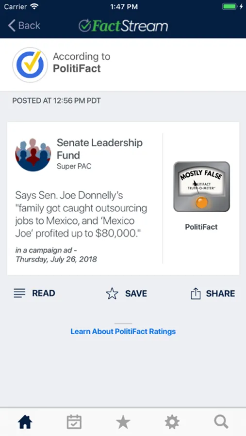 Choose to get notifications of just the “worst” ratings such as “4 Pinocchios” or “Pants on Fire.”