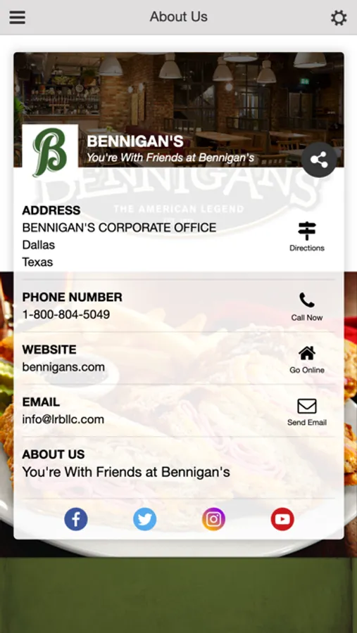 The story of our Legendary Irish Hospitality began over 40 years ago and continues today with new chapters that reflect Bennigan’s history while introducing a reinvented brand. We are redefining casual dining with chef-driven food, innovative drinks and memorable dining experiences for every guest, every meal, every day.