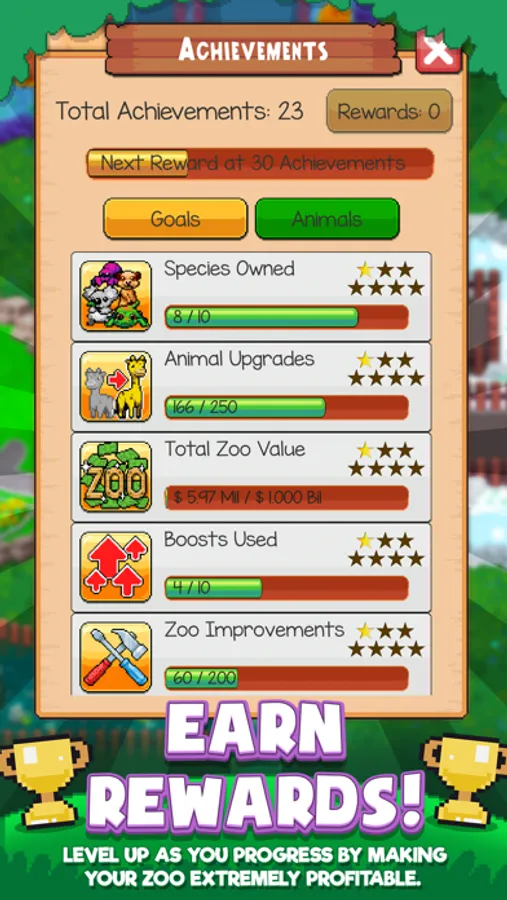 • Create a dream zoo and open it to visitors to begin increasing your income and grow your business empire