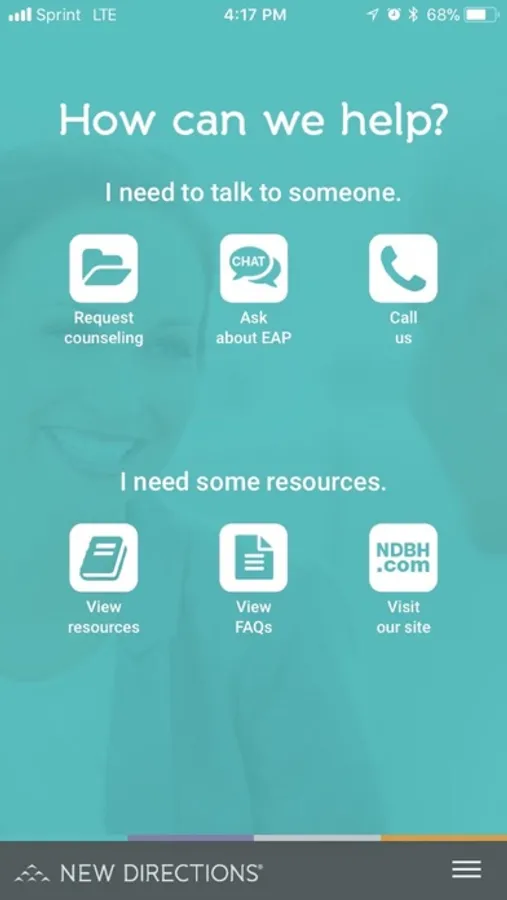 This app is available only to employees and their dependents who have the New Directions EAP. Check with your employer if you are uncertain if this free benefit is available to you. Support is available for improving relationships, reducing debt, lowering stress and so much more. No matter how you’re doing, the New Directions EAP is here for you. Download the app or call the Help Line at 800-624-5544.