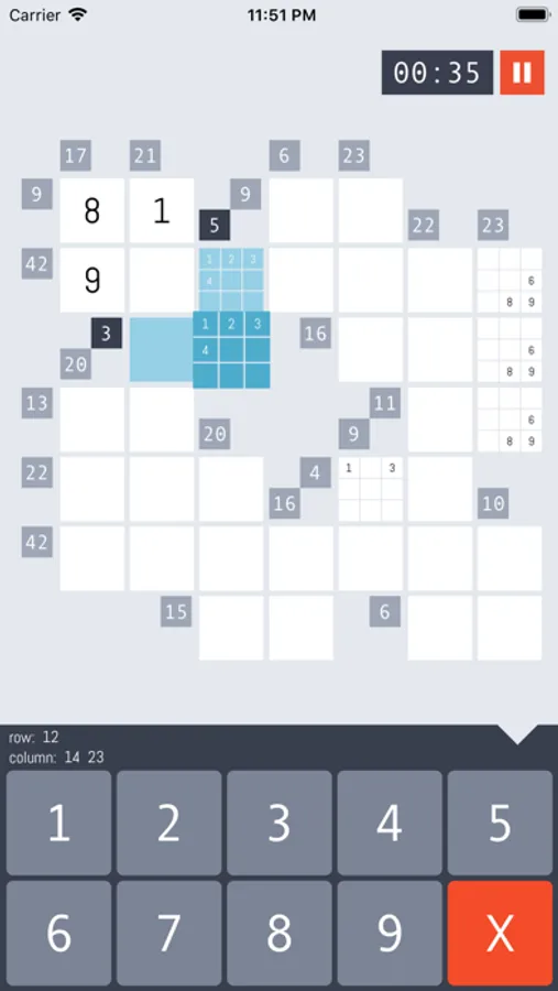 Kakuro Endless contains over seventeen thousand full free puzzles, displayed within an aesthetically pleasing and easy to use game board. It features zooming for easier play, pencil marks for making notes within cells, and a hide-able cheat sheet that displays digit combinations for tricky sums.