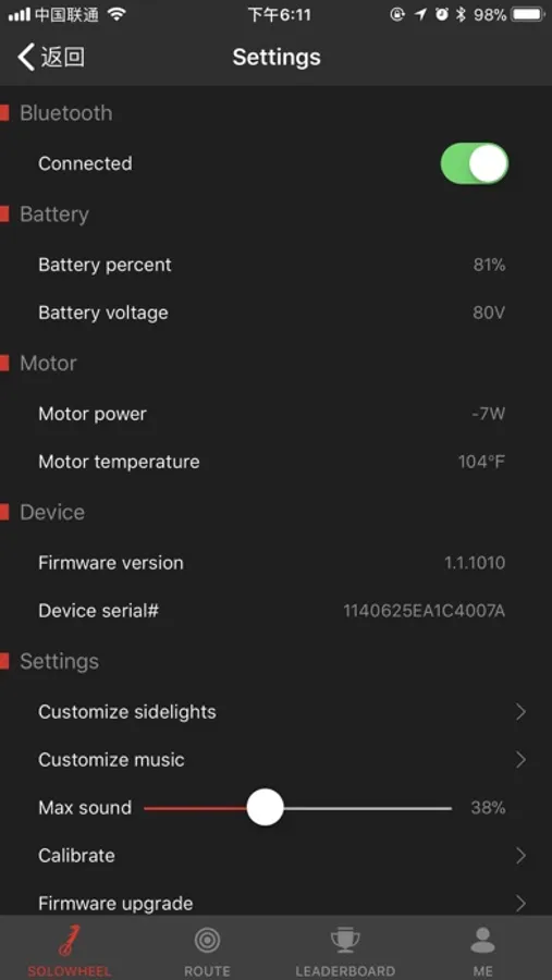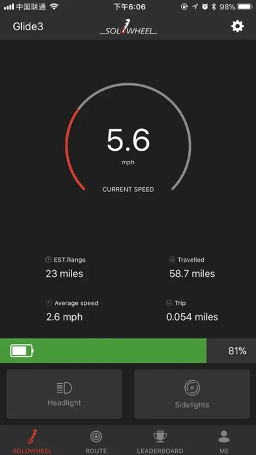 Solowheel App Connects your device to the Solowheel.