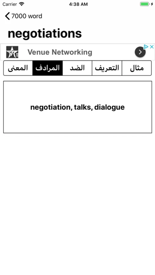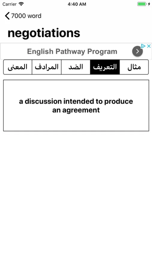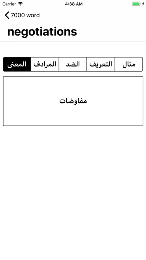 تعلم الكلمات الانجليزية الاكثر شيوعا", كل كلمة تحتوي على المعنى بالعربي وضدها والكلمة , المرادفة لها والتعريف ومثال عليها, التطبيق ليس بحاجة للاتصال بالنت.