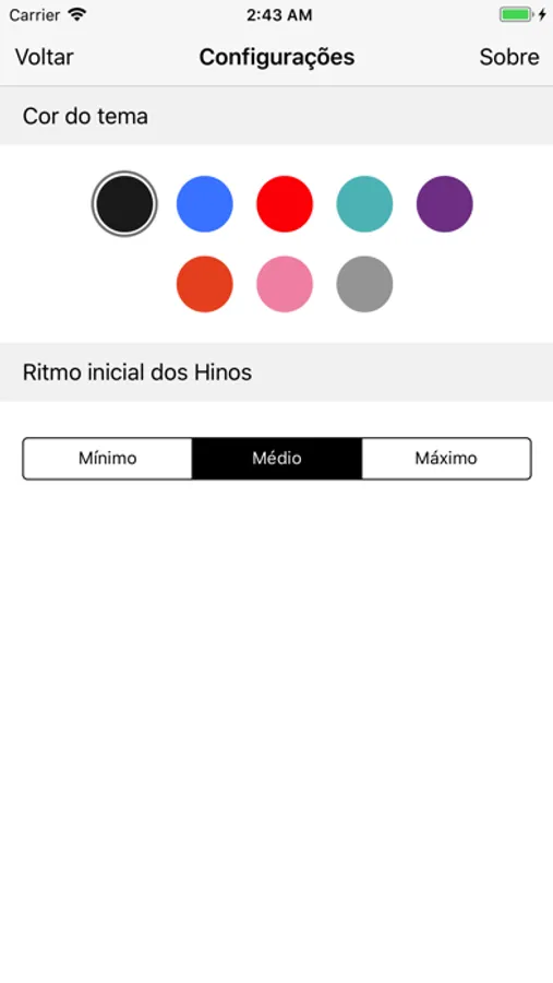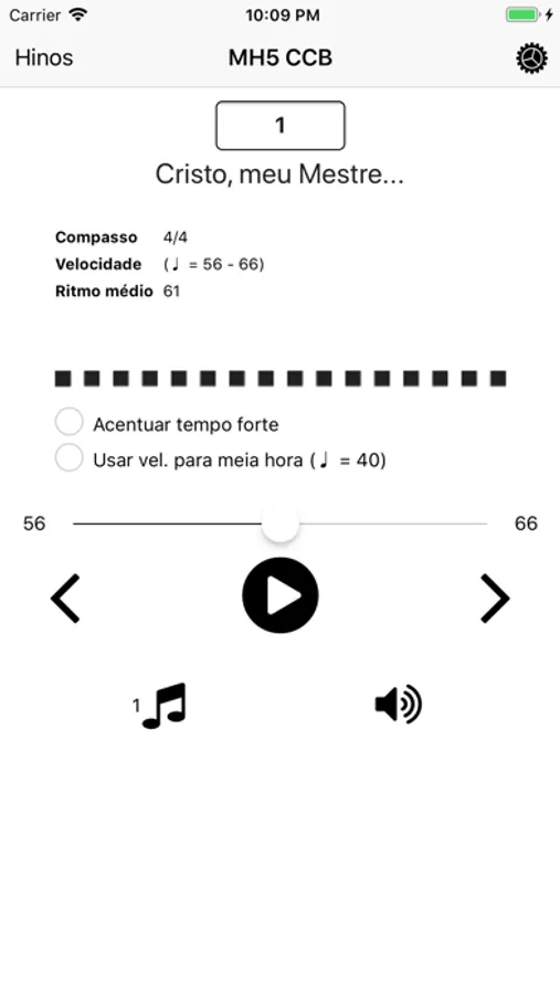 - Escolha do ritmo inicial de cada Hino (mínimo, médio ou máximo);