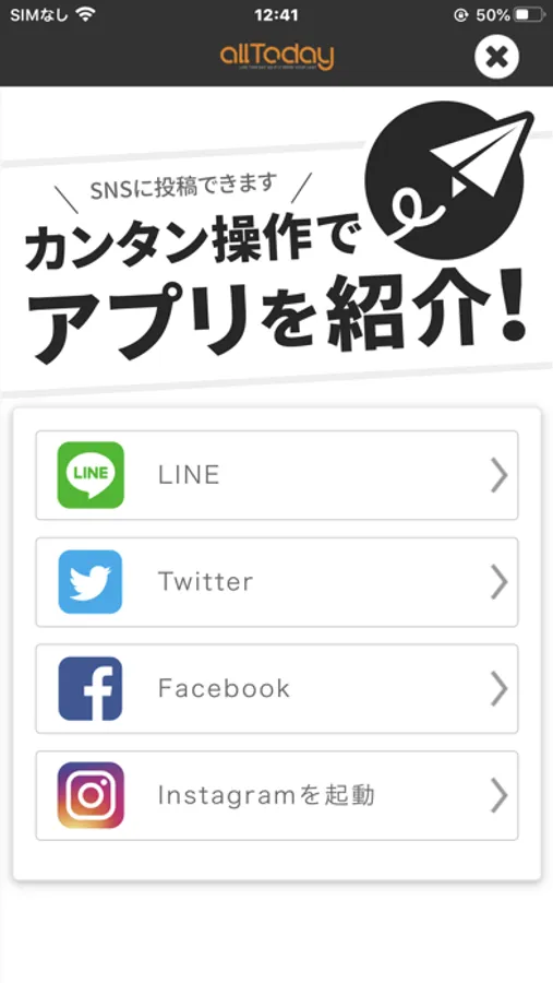 allTodayのアプリをSNSを通じてお友達に紹介する事ができます。