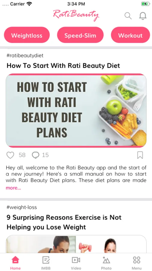 Watch Rati's diet plan videos and learn how she is losing weight through her diet. Follow her diet plans week by week. The app also offers Speed Slim Fast Weight Loss program for those who want to lose weight in a jiffy. Althrough healthy nutritious meals!