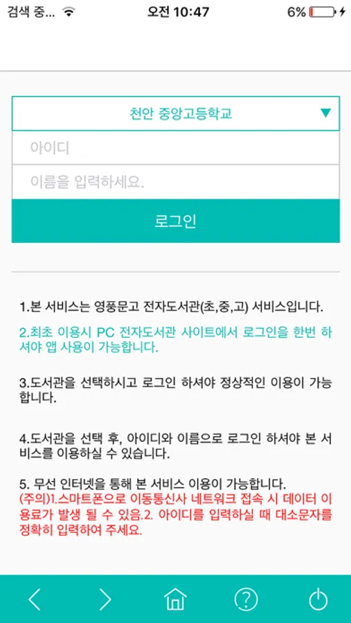 - 최초 로그인 시, 도서관을 선택 한 후 아이디/이름을 정확하게 입력하신 후 로그인 하셔야 합니다.