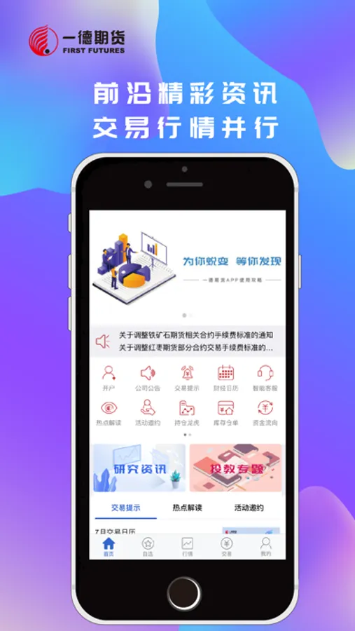 一款集资讯投资等多功能于一体的APP,为期货投资者提供专业的期货行情和在线交易、期货开户,及时发布最新要闻和业务公告,每日更新交易提示,让您足不出户便可轻松知晓期货事,急速便捷尽享交易乐趣。