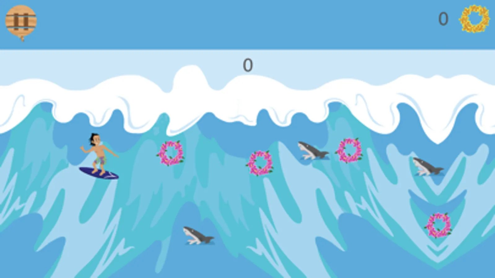 Set in the laid-back environment of Hawai'i, ride the wave as the handsome, tan, shaka throwing Aloha Surfer. Stay alive by avoiding the ravenous sharks and increase your score by collecting prismatic leis.