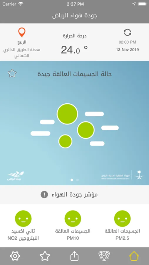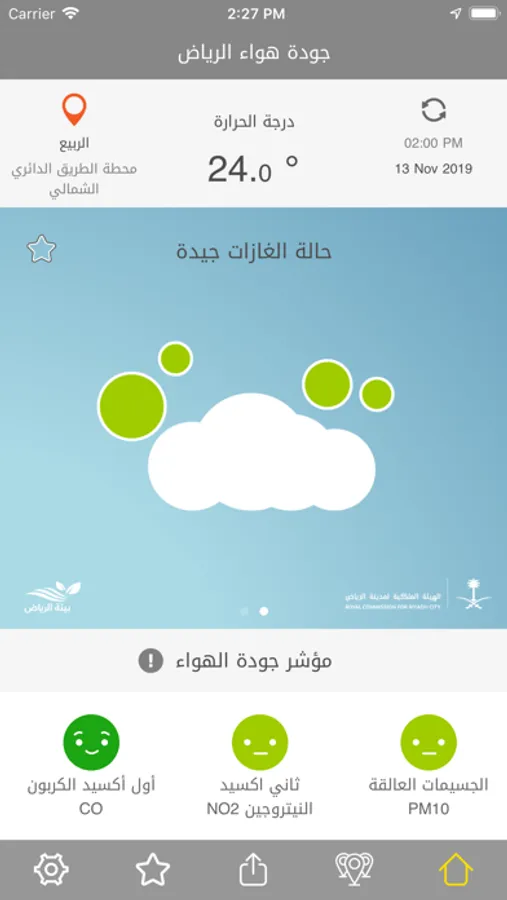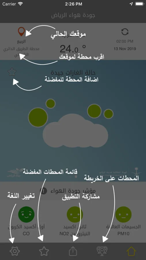 The application supports both Arabic and English, to provide overall integral data on the air quality within the area surrounding you.