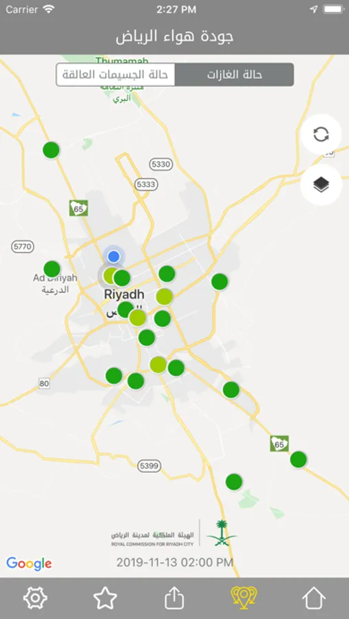 As part of the commission's mission in conveying the air quality's real-time data, a mobile application "Riyadh Air Quality" has been developed, providing accurate indications on the particulate matter along with the gases level in the air in an instantaneous and easy manner.