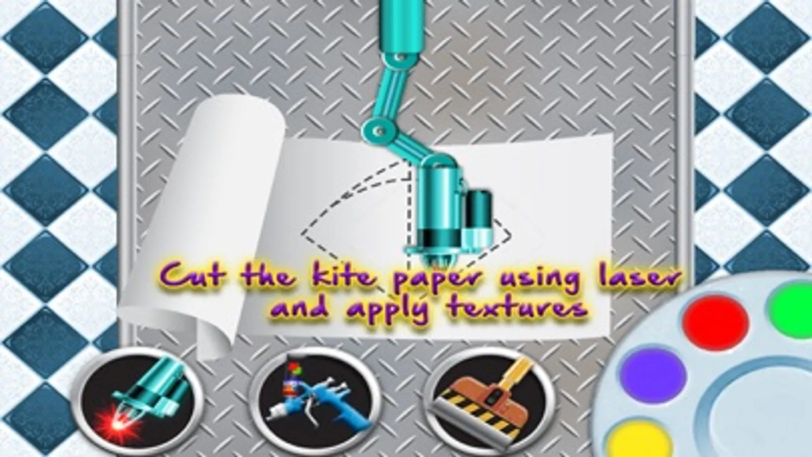 Guys! It’s time to start kite making process in kite factory. Process for kite making is very simple. You just have to press kite paper and start cutting. Paste sticks on kite and make whole for tie thread. Act like an expert kite maker, Paste texture on kites in different smiles and other material so that your kite may be prominent in the sky. In kite match, you can win this kite match after fighting completion with different types of kites.