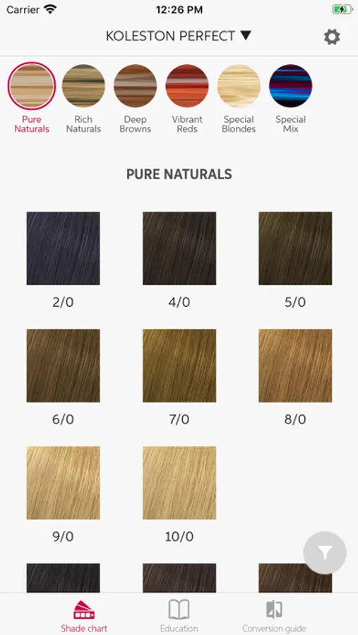 - Digital Shade Chart: Browse the shade families and watch a realistic on-head result under different light conditions. filter relevant shades by selecting the natural base hair color.