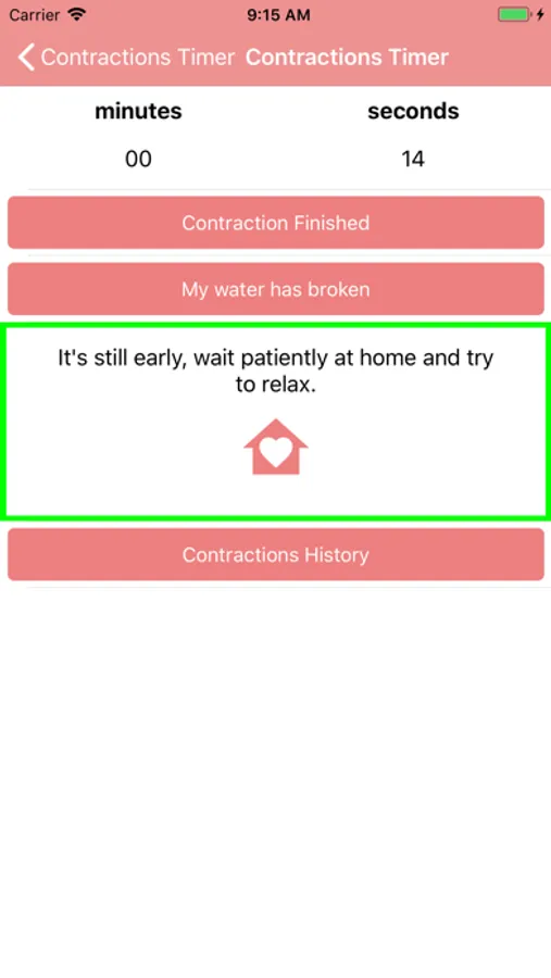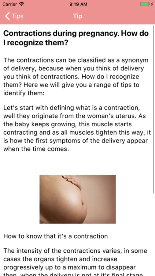 * Contraction tracker, contraction counter and tips: An all-in-one app to help you in the final stage of your pregnancy.