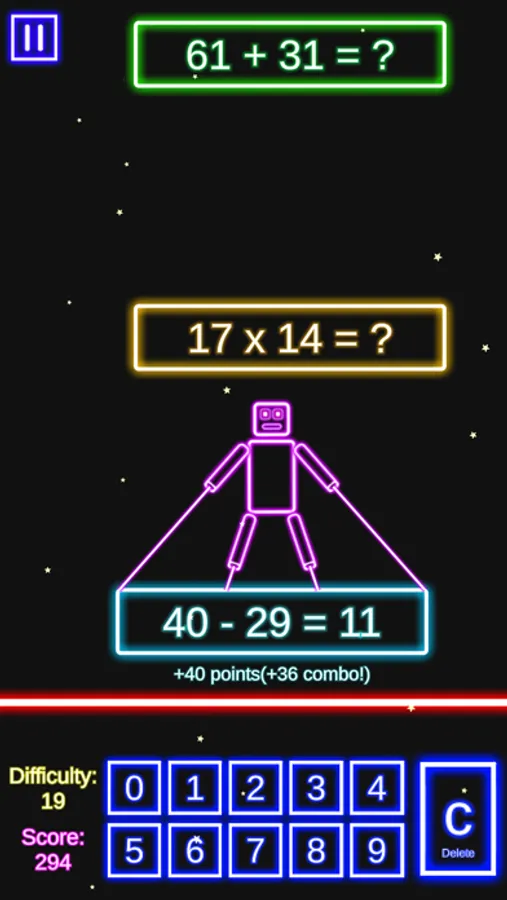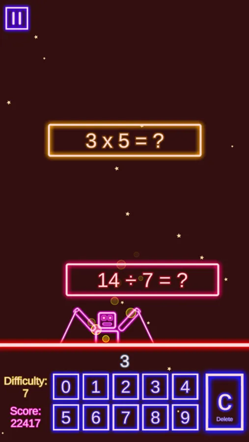 Laser Math is a laser and neon themed mathematic game. It is designed for practicing summation, subtraction, multiplication and division.