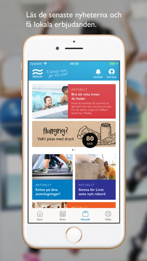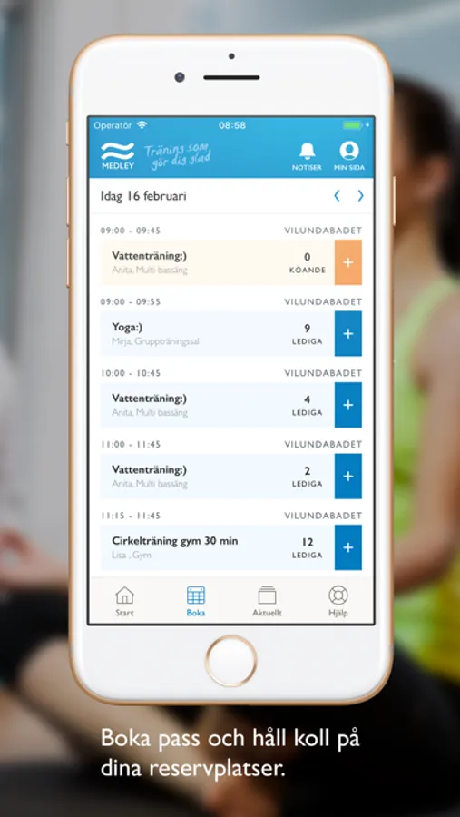 I Medleys app kan du som är medlem boka pass och hantera dina bokningar. Du kan också se din träningshistorik och lägga in egen träning. Givetvis kan du även ta del av öppettider, aktuella erbjudanden, nyheter och annat skoj gällande just ditt center. Läs mer på medley.se/app