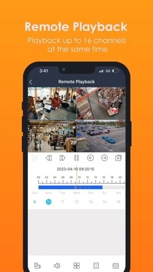 - Playback Recorded Video Remotely by Selecting the Date of Recorded Video and Using the Scrolling Timeline