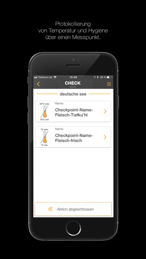 Mit CHECK HACCP brauchen die dokumentationspflichtigen Daten nicht mehr mit Zettel und Stift manuell dokumentiert werden. Über die CHECK HACCP App und einem bluetooth fähigen Kerntemperaturfühler werden sämtlich erfassten Daten digital in der CHECK CLOUD in Deutschland abgelegt. Das spart Zeit, Geld und gibt dem Verantwortlichen die Möglichkeit in Echtzeit zu sehen, was gerade passiert und gegebenenfalls zu handeln. Mit der CHECK HACCP App erfassen Sie ebenfalls die Hygiene-Dokumentation per Foto und automatisierten Handlungsoptionen.
