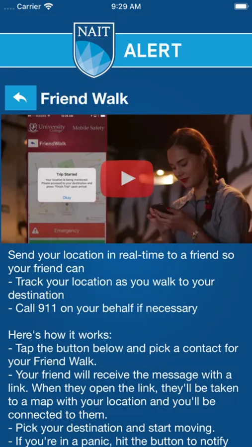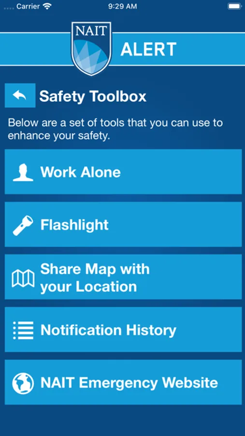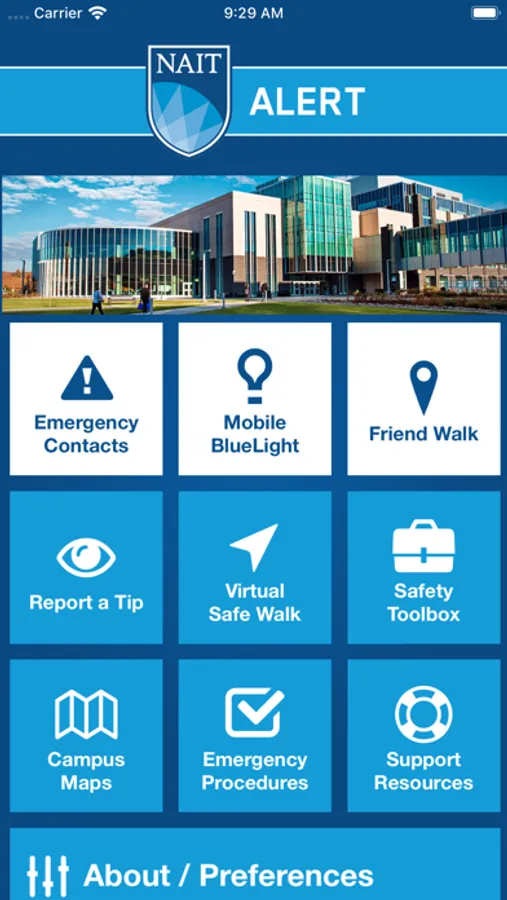 - Mobile Bluelight: Send your location to NAIT security in real-time in case of a crisis