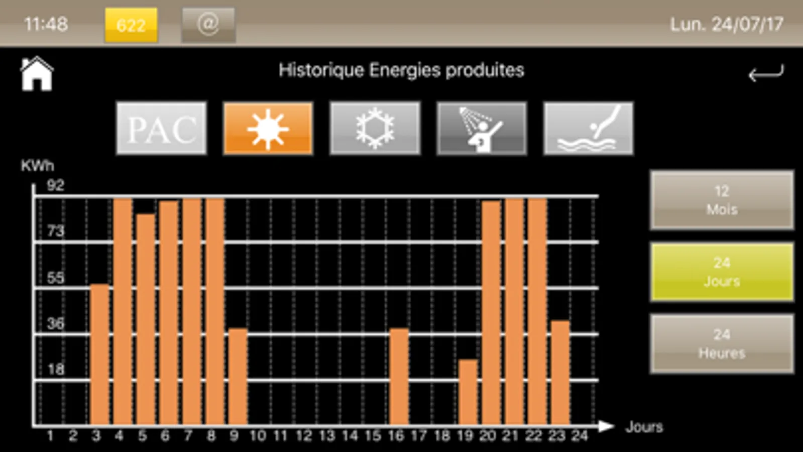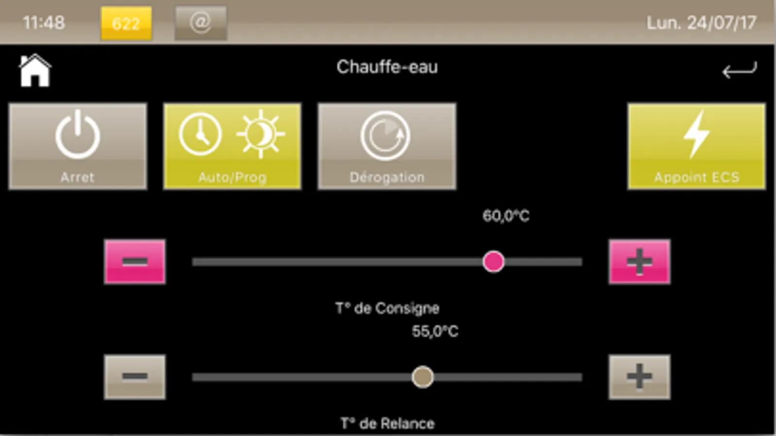 L’application alpPAC Control offre les mêmes fonctionnalités que l’application de l’écran tactile de votre PAC, à savoir :